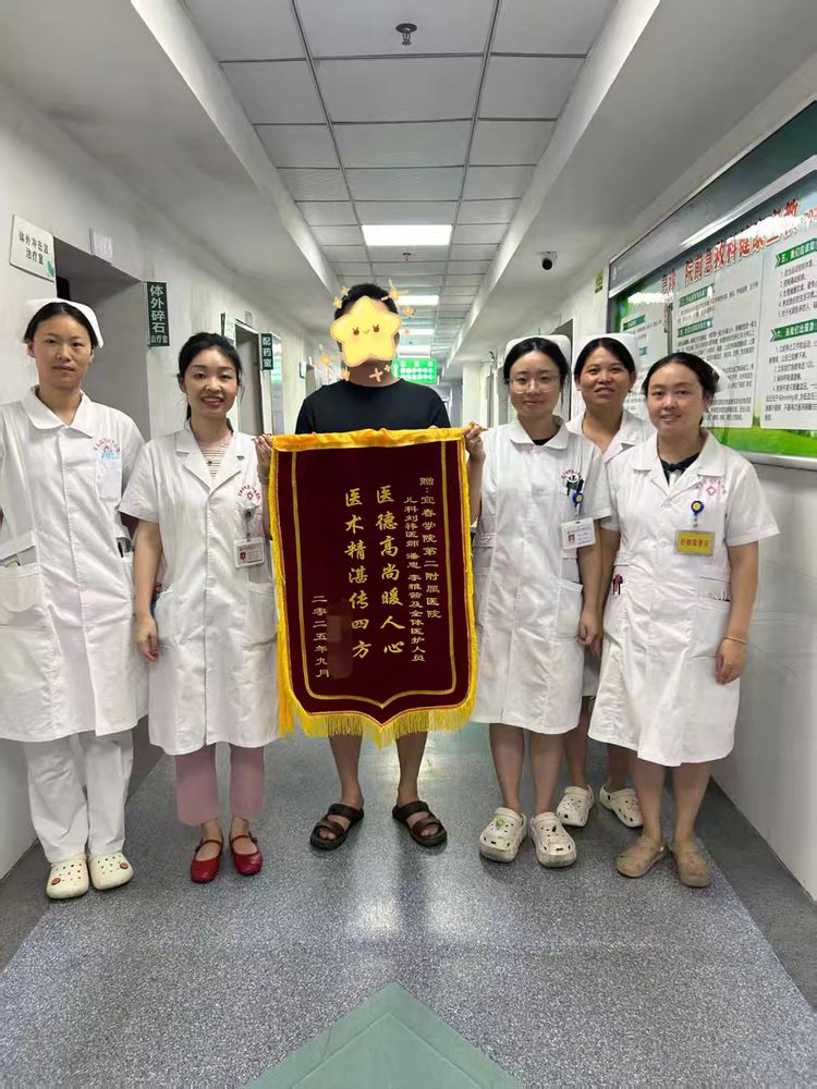 孩子住院期间,医护人员耐心为患儿解答疑问,安抚情绪,给予无微不至的关怀,凭借专业医术帮助孩子恢复健康。医护团队用行动诠释了“医者仁心”的含义,让家属在焦虑中感受到温暖与安心。面对赞誉,刘祎医生却十分淡然:“作为儿科医生,医术是基础,医德是根本。孩子不会表达,家长满心焦虑,我们多一分耐心、多一点关怀,就能让他们少一分不安。这都是我应该做的。” 锦旗,是医患之间的温情见证,更彰显了全体儿科医护团队以患者为中心、恪守医德的职业追求。未来,宜春学院第二附属医院儿科全体医护人员将持续弘扬高尚医德,提升医疗服务,用爱与责任守护每一个孩子的健康童年。 供 稿:李雅茜 图文一审:熊 斐 图文二审:晏聪聪 图文三审:邓 添 |