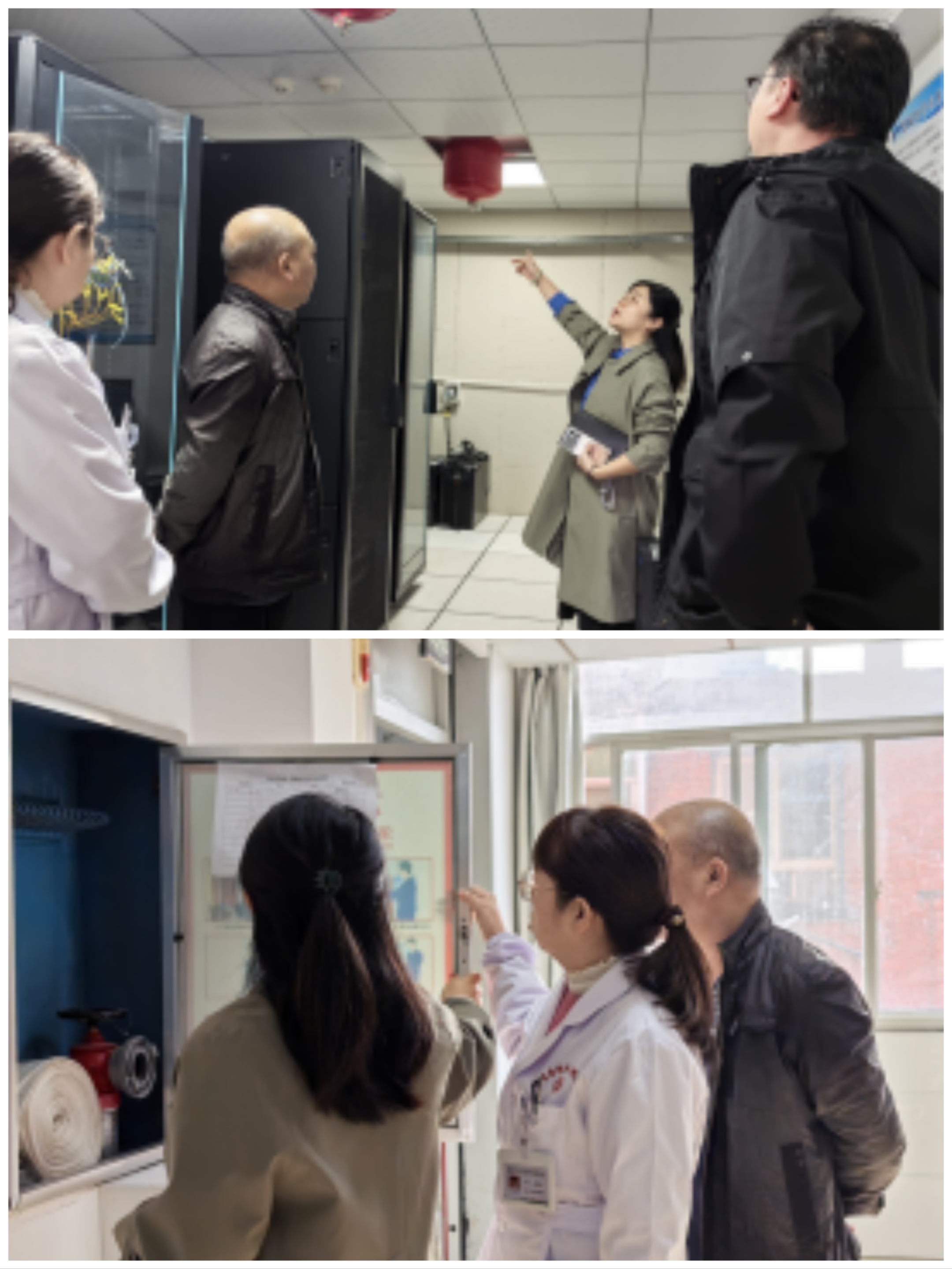 开展全院消防安全“拉网式”排查,重点检测一键报警系统灵敏度、保安应急到警时效;细致检查病房、机房、氧气房等关键区域的消防设施配备与完好情况,同时督导物业保安规范执勤,要求定期组织消防安全实战演练。