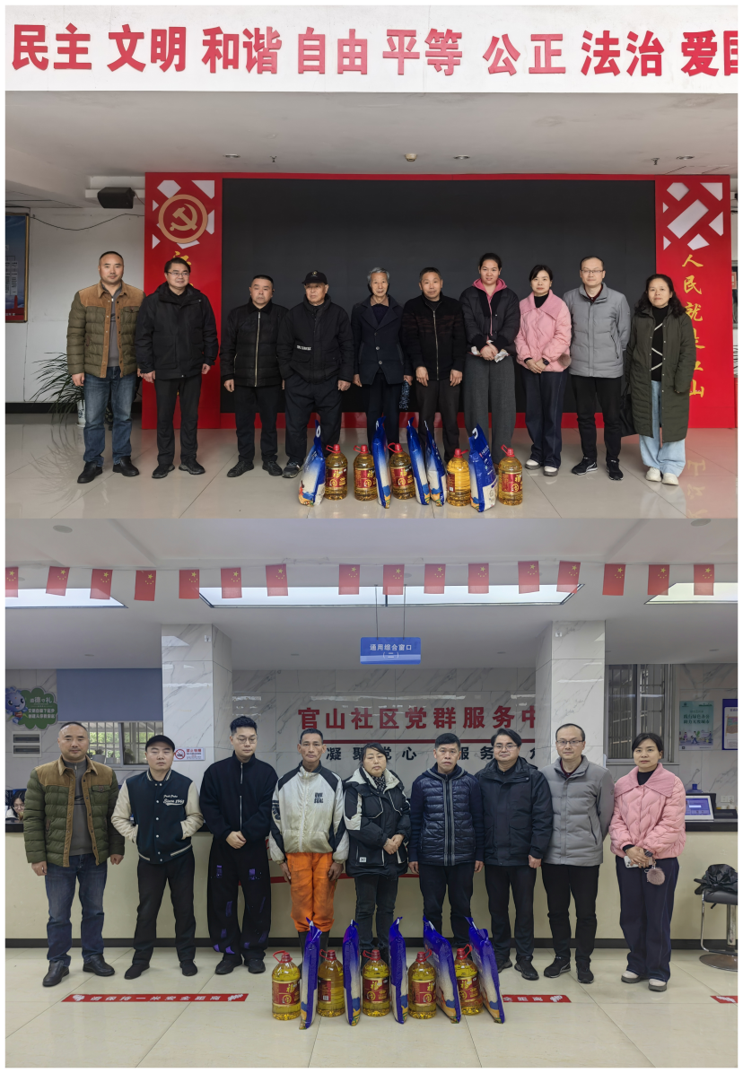 为切实关怀辖区困难居民,传递新春温情,2026年2月6日,宜春学院第二附属医院院长邱志宏、副院长邓添、党委委员黄明及党政办、工会部门负责人,先后前往凤凰街道、官山社区,开展“寒冬送温暖”慰问活动,为困难居民送上生活物资和新春祝福,用实际行动践行医者担当。