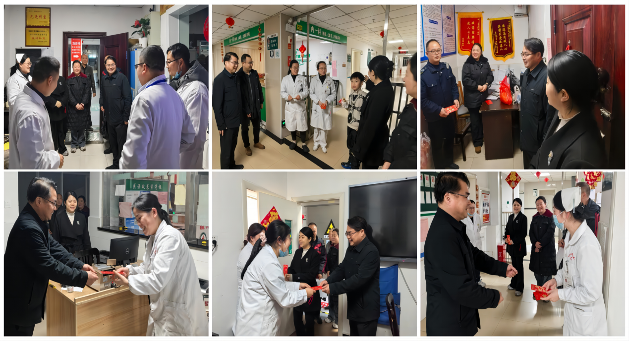 岁末年初,寒意未消,温情涌动。2026年2月16日,农历除夕,在这万家团圆、辞旧迎新的美好时刻,院长邱志宏、副院长彭芳带领相关科室负责人,先后深入急诊病区、住院病区、医技科室及后勤保障部门,走访慰问春节期间坚守岗位的一线医务人员和工作人员,向大家致以最诚挚的节日问候和最美好的新春祝福。