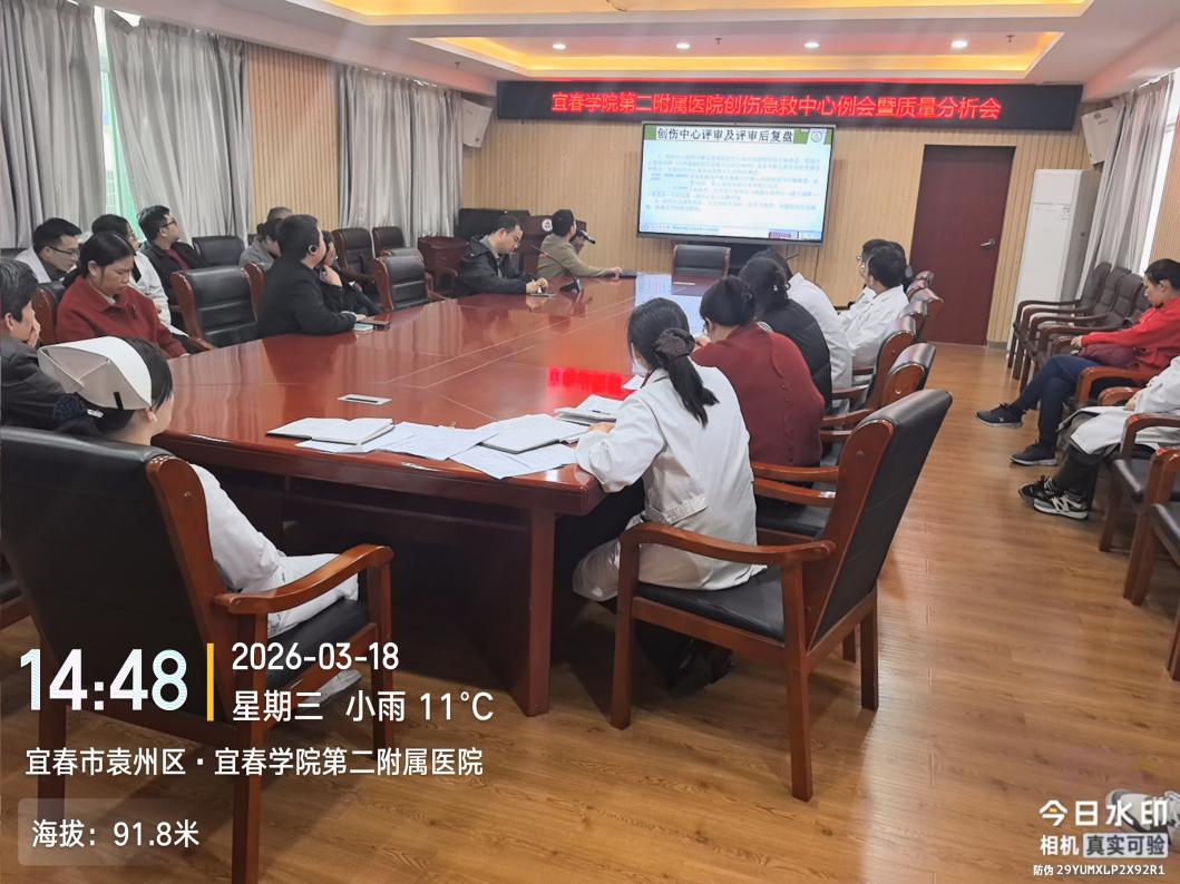 为持续深化创伤急救中心标准化建设,全面提升创伤救治质量与效率,近日,宜春学院第二附属医院在门诊四楼会议室召开创伤急救中心例会暨质量分析会。创伤急救中心委员会成员、全体医师(除当班外)参会,会议由医务科副科长杨树仁主持,院长邱志宏出席并讲话。