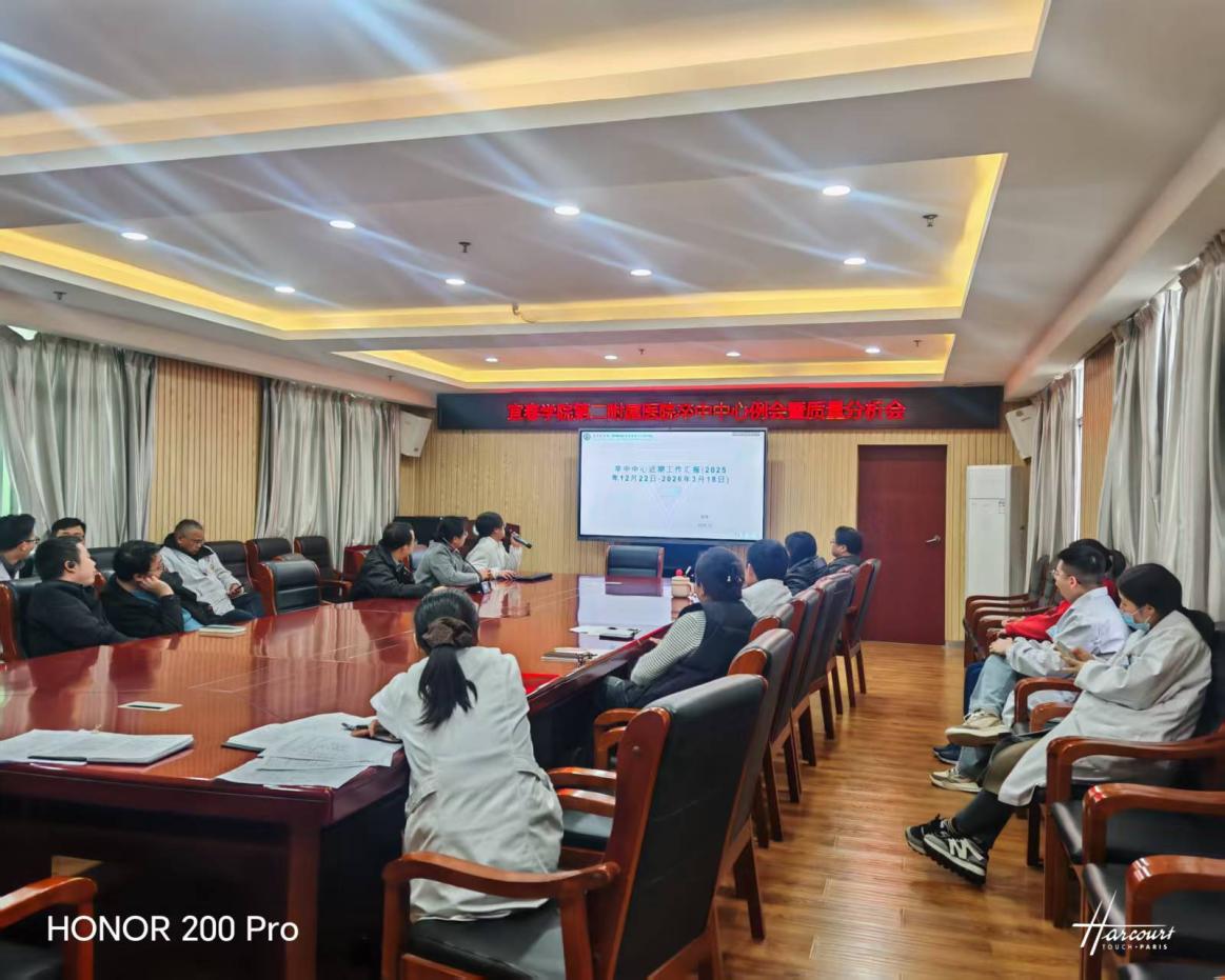 近日,宜春学院第二附属医院在门诊四楼会议室召开卒中中心例会暨质量分析会,卒中中心委员会全体成员、相关科室负责人及业务骨干、除当班人员外的全体医师齐聚一堂,参会研讨。